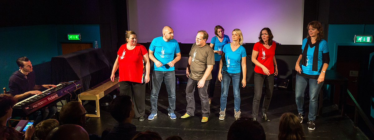 We trainen (repeteren is hier niet de juiste term…) elke dinsdagavond in een theaterruimte dicht bij het centrum van Eindhoven, de avond sluiten we af met een drankje en wat nootjes in cafe Wilhelmina aan het Wilhelminaplein.