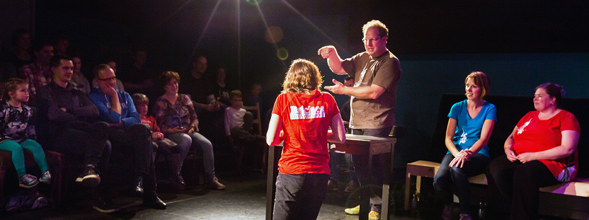 Veel van onze voorstellingen zijn ‘s avonds en geschikt vanaf 12 jaar, maar regelmatig geven we ook een matineevoorstelling, geschikt voor alle leeftijden. Kijk op de speeldata pagina voor de komende voorstellingen.